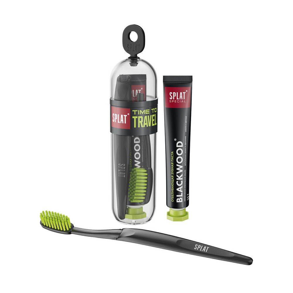 Splat дорожный набор зубная щетка splat travel средняя+зубная паста серии special черное дерево 25 г