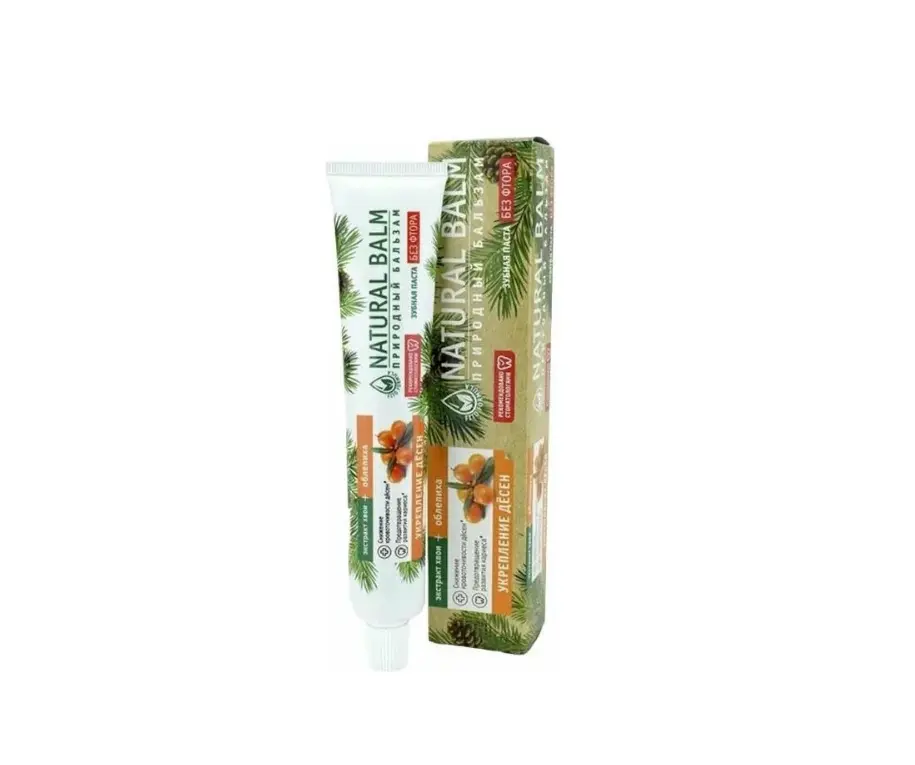 Зубная паста Природный бальзам NATURAL BALM Облепиха способствует интенсивному питанию и укреплению десен. Она обладает иммуноактивным действием и в 2 раза улучшает работу собственного иммунитета полости рта, снижая риск развития проблем с деснами. Клинически-доказанный эффект: С первого применения исчезает болезненность десен До 94% снижает воспаление десен при регулярном использовании в 5 раз снижает скорость образования налета на зубах, уменьшая бактериальную нагрузку на мягкие ткани полости рта.