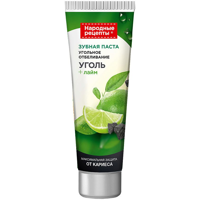 Зубная паста Угольное отбеливание эффективно и бережно отбеливает зубы, не повреждая эмаль и предотвращает появление налета. Активированный уголь очищает зубы даже в труднодоступных местах, поддерживает свежее дыхание. Лайм освежает дыхание, укрепляет зубную эмаль, защищает от кариеса и помогает сделать ваши зубы белее. С зубной пастой Угольное отбеливание вы надолго сохраните свои зубы здоровыми, дыхание свежим, а улыбку белоснежной!