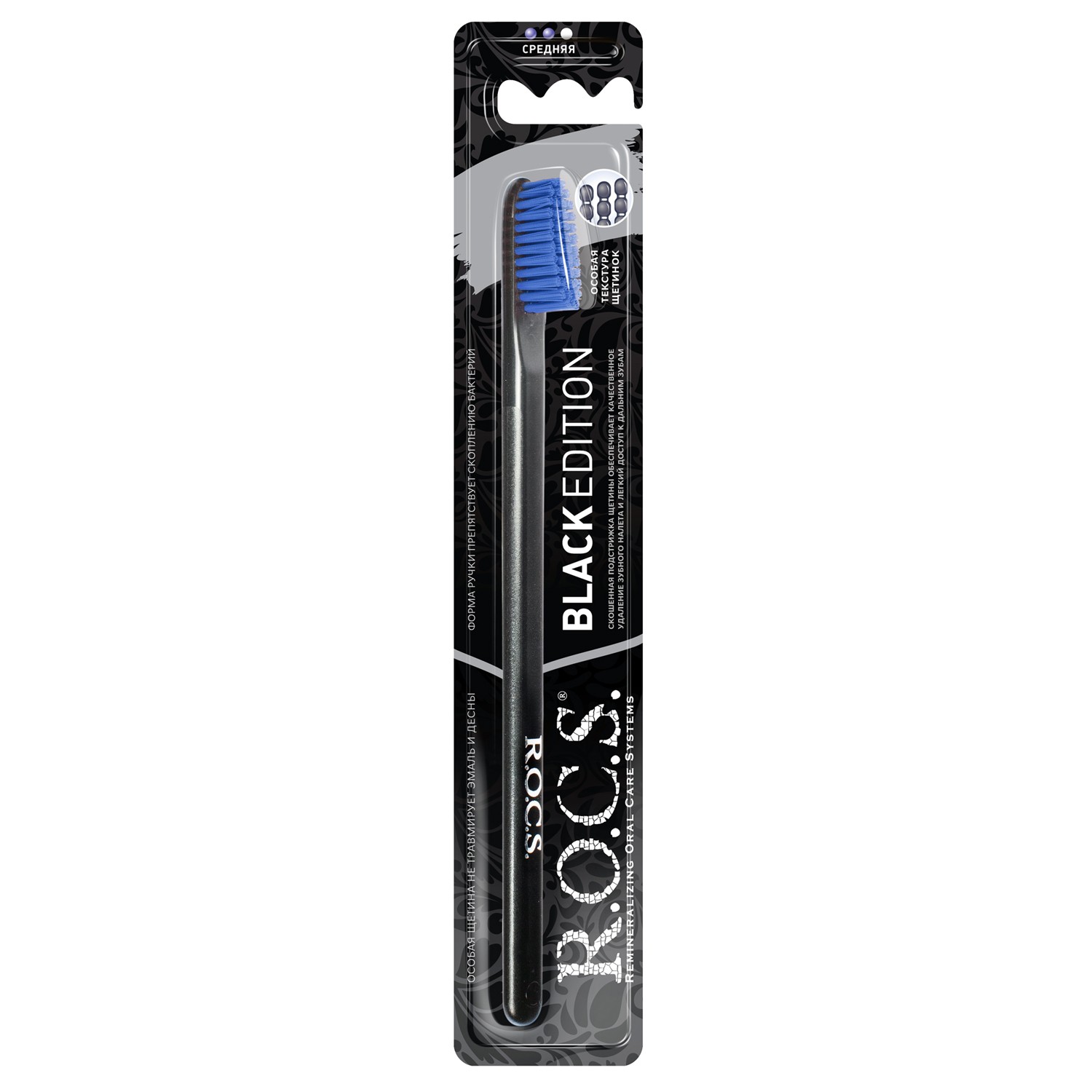 Черная зубная щетка R.O.C.S. «Black Edition» Classic, средняя разработана при участии стоматологов и обеспечивает качественную гигиену полости рта. Она предназначена для регулярного ухода и предоставляет целый ряд важных преимуществ.