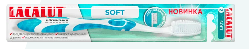 Зубная щетка LACALUT® (Лакалют) soft: мягко массирует и укрепляет десны, а также деликатно очищает склонные к повышенной чувствительности зубы.