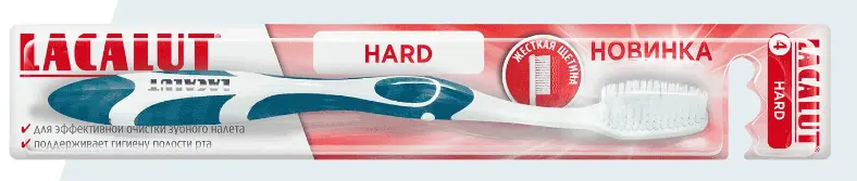 Зубная щетка Lacalut hard подойдет любителям чая, кофе, табака и людям, стремящимся осветлить и хорошо очистить зубную эмаль от налета.