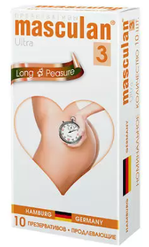 Masculan презервативы 3 Ultra №10 продлевающий с колечками пупырышками и анестетиком